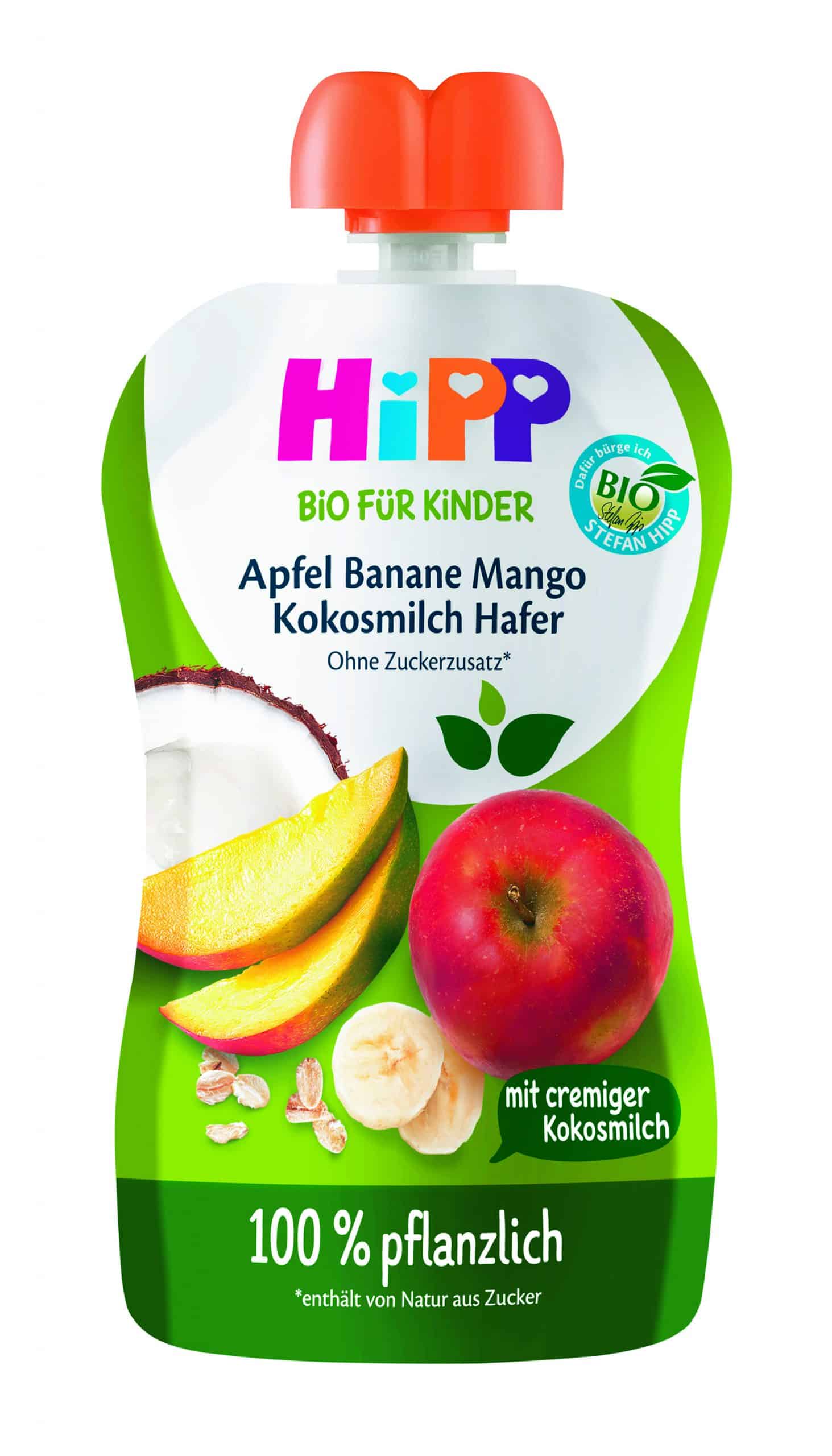 Das Besondere an den „HiPP 100 % pflanzlich“ Quetschies und Smoothies sind die reinpflanzlichen Milch-Alternativen aus Bio-Kokosmilch sowie Bio-Haferdrink für noch mehr Geschmacksvielfalt und Abwechslung für Babys und Kleinkinder. Mit kindgerechten Zutaten und wichtigen Nährstoffen stellen die neuen „HiPP 100 % pflanzlich“ Produkte einen wertvollen Baustein in einer gemischten Beikost dar.